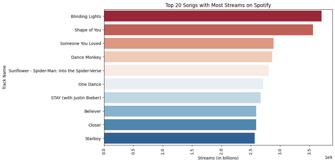 In this project, I conducted an in-depth analysis of the most streamed songs on Spotify in 2023. Exploring the musical landscape of the year, I uncovered top artists and songs, key features of successful songs that captivated listeners the most. From genres to popularity metrics, the analysis provides a comprehensive view of the music that defined the streaming scene in 2023.