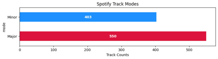 As it could be possible expected, the songs written in major mode outnumber the minor songs.