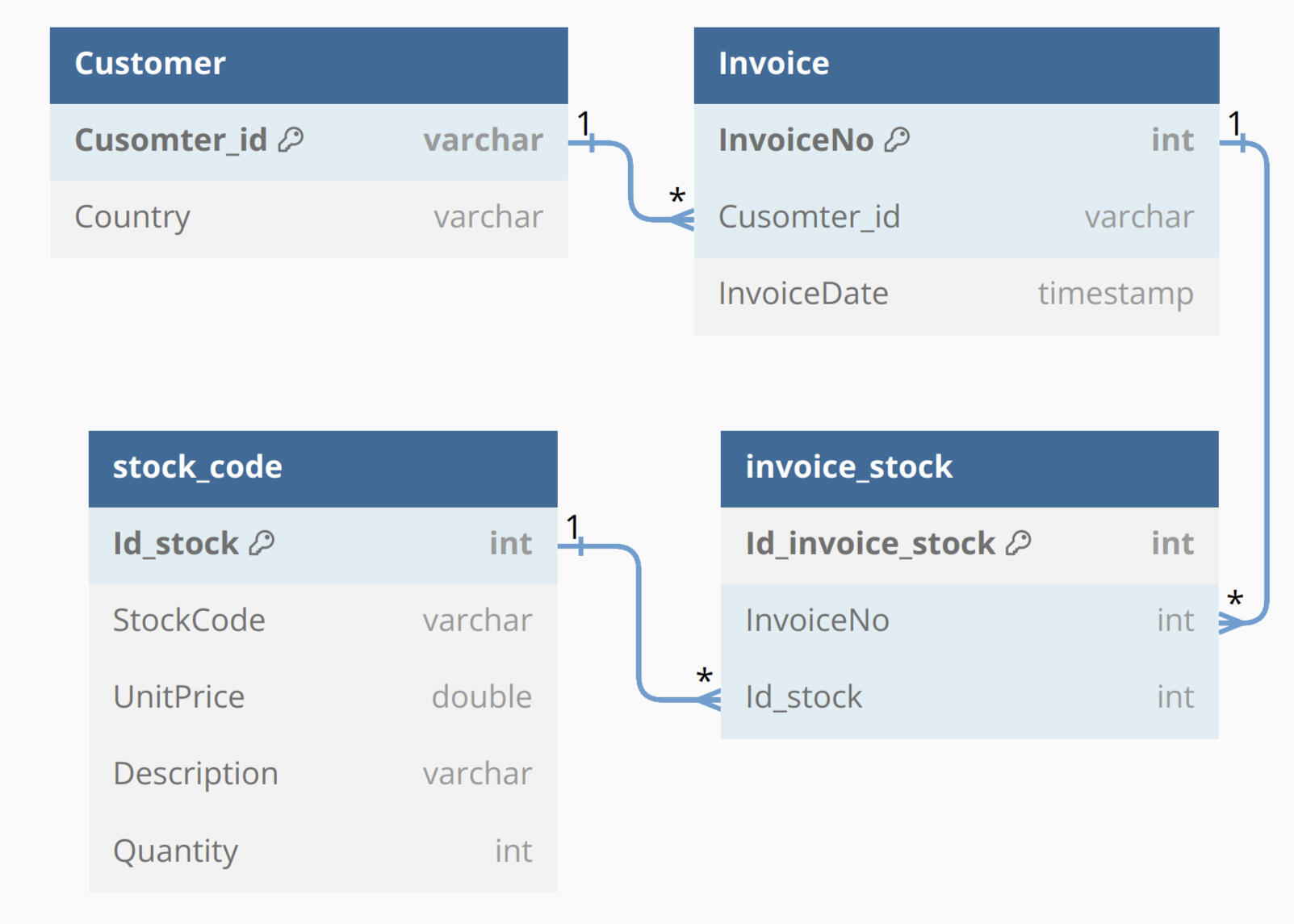 based on the requirements, we designed an Entity-Relationship (ER) diagram to define the structure of the PostgreSQL database. Key relationships were established as decipted below: