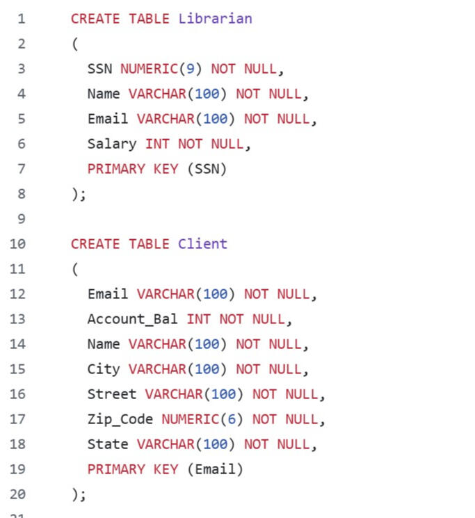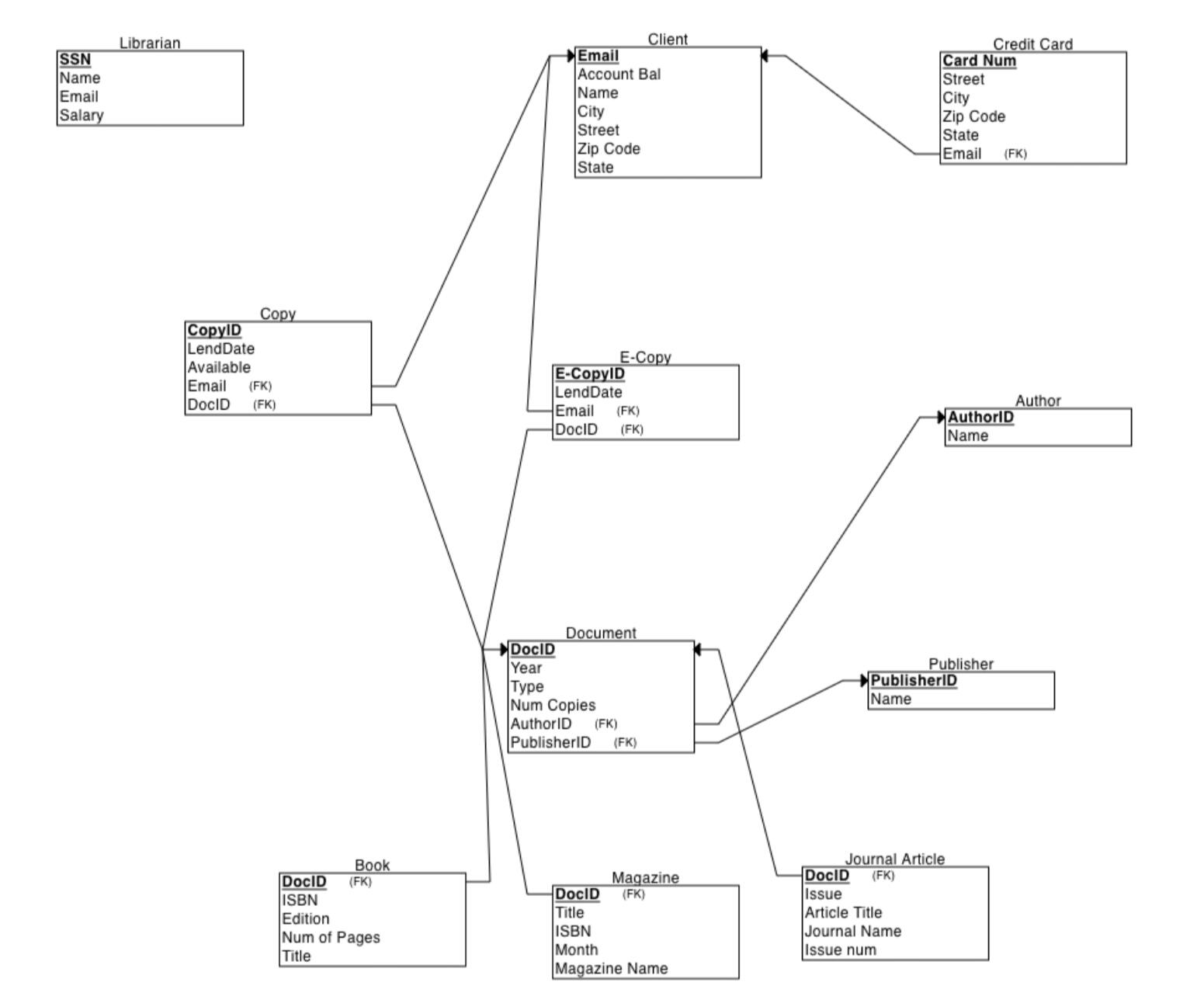 We began by gathering and analyzing the requirements for a typical library management system. This step involved understanding the entities, relationships, and functions essential to managing library resources and client interactions. The requirements were documented, identifying the main entities such as Document, Author, Publisher, Copy, and Client. Here's a link to the GitHub Repository: