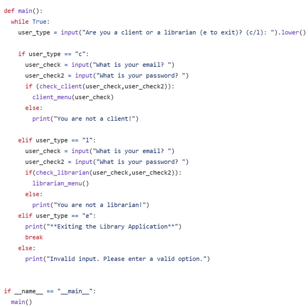 Python was used as the backend programming language to interact with the PostgreSQL database. Using libraries such as psycopg2, we developed functions to handle common operations in the system. Here's the link to the Python code: